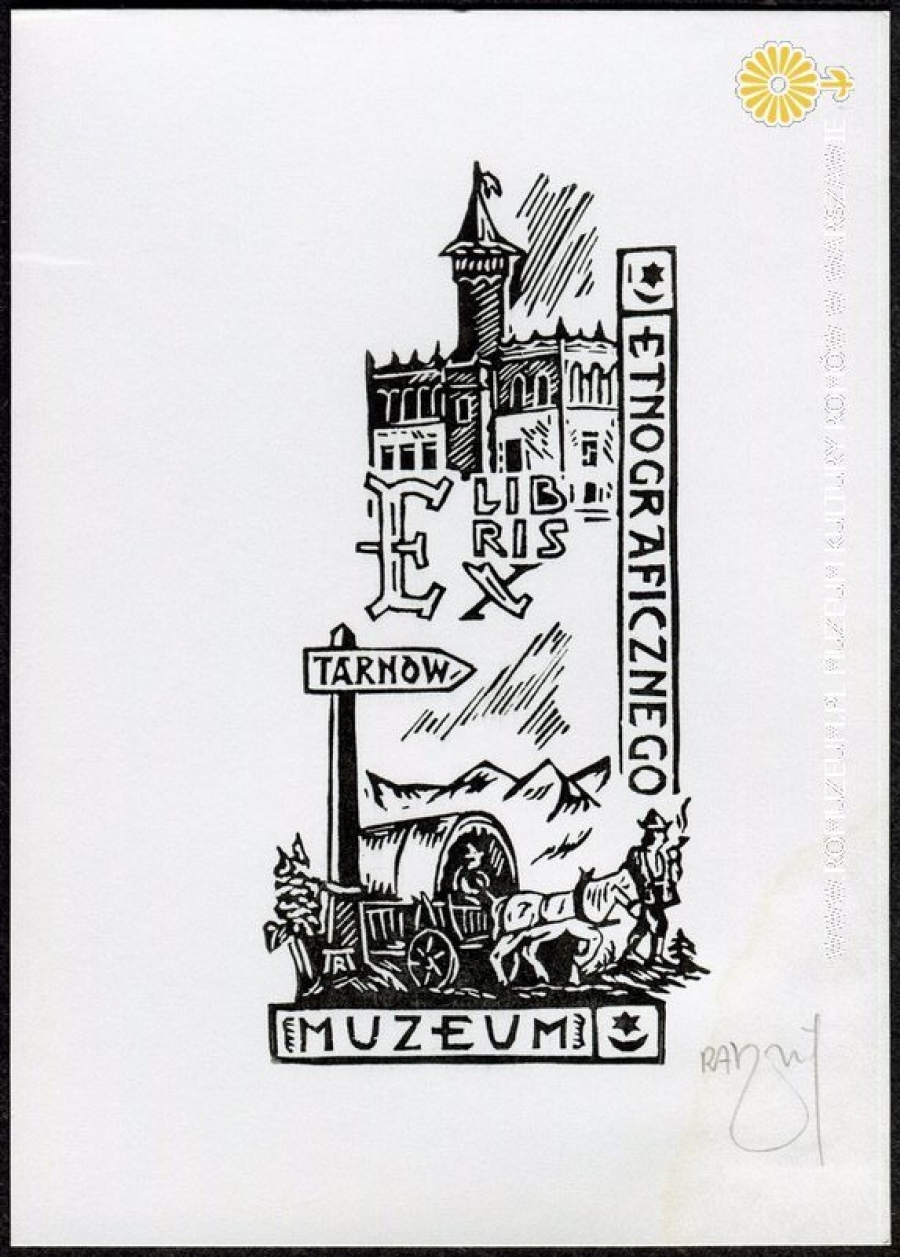 Exlibris Muzeum Etnograficznego w Tarnowie, aut. Ryszard Bandosz (*22 VIII 1947 Gryfice), linoryt odręcznie sygnowany, 14,8 x 10,5 cm., Warszawa 2012
