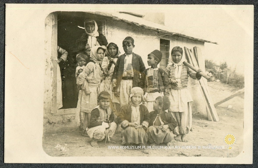 Grupa dzieci na tle domostwa, prawdopodobnie Albania, Macedonia lub Bośnia, wyd. nieznane, bez obiegu, circa 1915