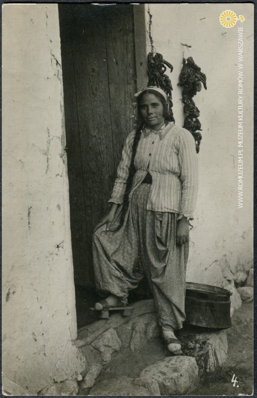 Młoda kobieta w drzwiach domostwa, Serbia/Macedonia, wydawca nieznany, obieg Deutsche Feldpost 176, 23 IV 1918