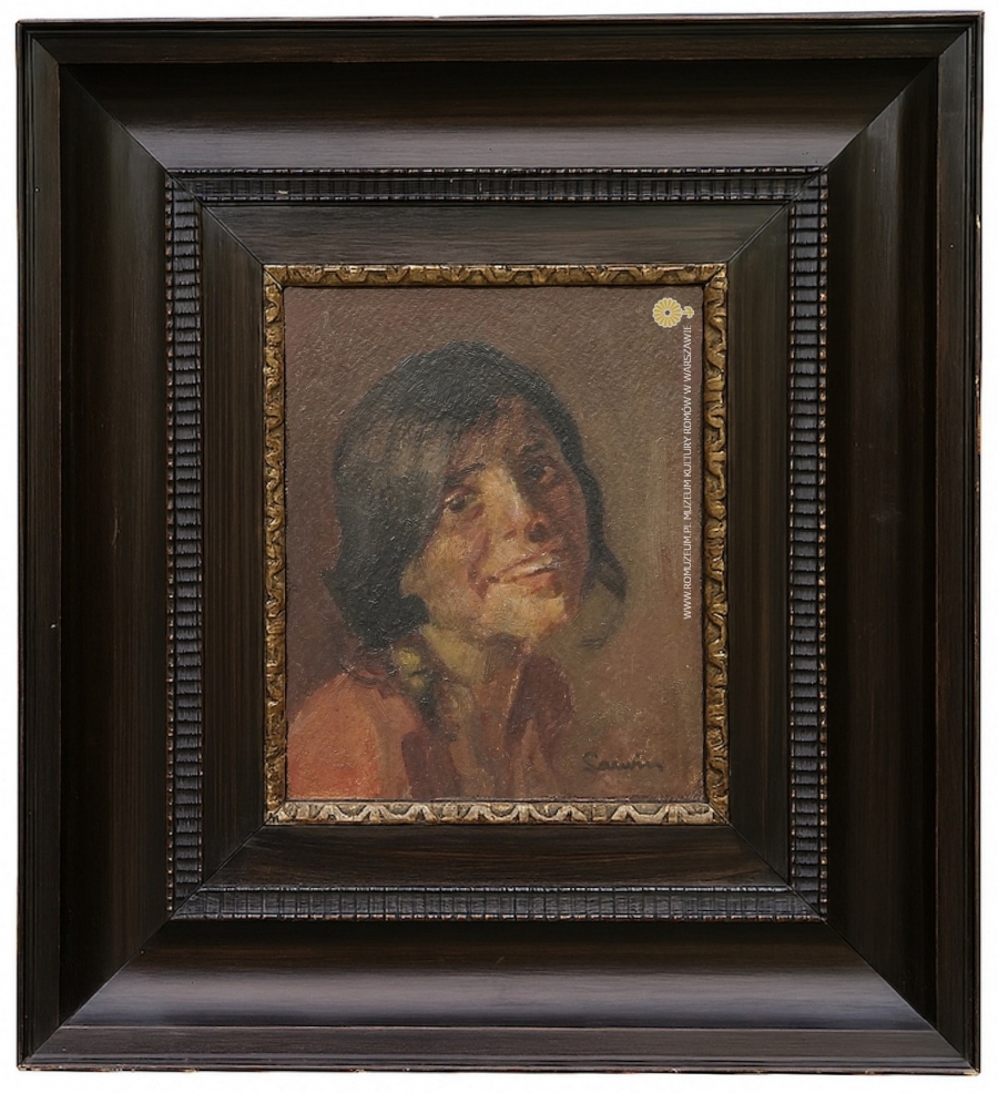 Kopf einer Zigeunerin, Hans Larwin ( *6 XII 1873 Wiedeń - †17 XI 1938 Wiedeń), olej na płycie pilśniowej, 29 x 20 cm (rama 51 x 45 cm), circa 1910